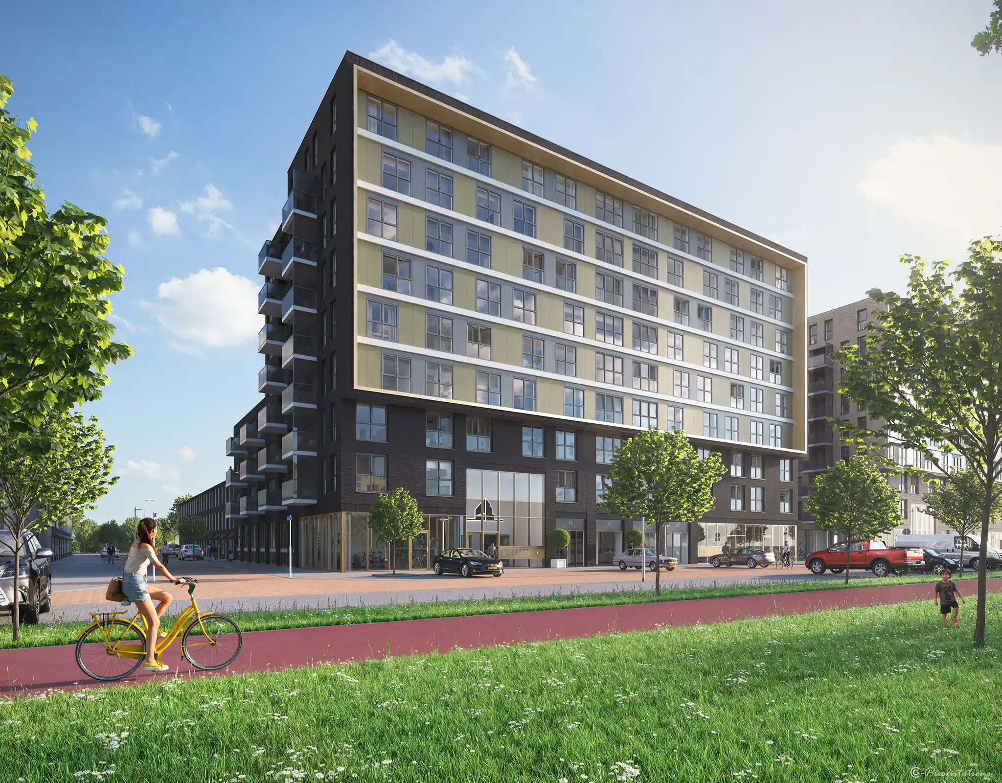 Dankzij de consistente stijl en uitwerking konden bestaande verkooptekeningen worden doorvertaald naar verhuurpresentaties, zonder stijlbreuk of kwaliteitsverlies.